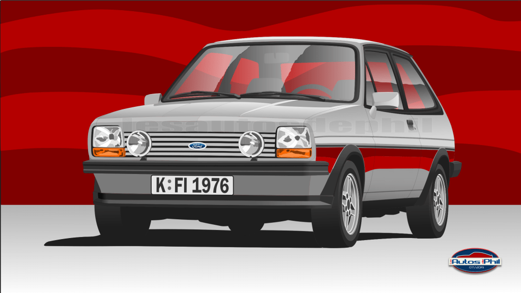 Les années 60 ont connu le boom du développement immobilier avec la construction de grands ensembles dans de nombreux quartiers ou villes nouvelles périphériques. Ceci, combiné avec l’essor de l’économie, poussait la population à une migration progressive de la campagne vers la ville avec à la clé, des besoins de déplacement modifiés. L’industrie automobile ayant bien saisi la mutation, s’est adaptée et a proposé des véhicules compacts, polyvalents prêts à répondre à ces nouveaux besoins : il s’agit bien sûr des citadines. La Fiat 127 en 1971, les Renault 5 et Peugeot 104 en 1972 ont été les premières à investir le secteur en rencontrant le succès. En présentant sa Fiesta en 1976, après l’Audi 50 et la Volkswagen Polo, le grand constructeur américain Ford s’y est mis relativement rapidement, au contraire de son grand concurrent Opel qui attendra 1982 pour lancer sa Corsa. Comme à son habitude, Ford propose d’emblée plusieurs moteurs et finitions que l’on peut combiner à sa guise permettant de coller aux mieux aux souhaits de chacun. Ainsi les motorisations s’échelonnent de 1.0, 1.1 à 1.3 l et à côté des finitions classiques « Base » et milieu de gamme « L », on pourra opter pour la luxueuse Ghia ou un dérivé à la présentation sportive « S ». Cette dernière utilisant les mêmes motorisations que les autres finitions, c’est une sportive uniquement par l’aspect ! Néanmoins, comme le marché des petites sportives se développe de manière importante avec notamment les Autobianchi A112 Abarth, Peugeot 104 ZS, etc… Ford va proposer une Supersport en 1980 mais tout en conservant les moteurs 1,1 de 53 ch et 1,3 l de 66 ch inchangés par rapport aux autres finitions ! Elle va donc une nouvelle fois miser uniquement sur sa présentation (tapageuse !) à renfort de spoiler avant, d’élargisseurs d’ailes en plastique noir mat qui fera des ravages dans les années 80. Ford y ajoute de très jolies jantes sport et, cerise sur le gâteau, dote les flancs de ces incroyables bandes de couleurs très tape à l’œil. Il faut bien reconnaître que la mignonne Fiesta du départ, ainsi affublée, gagne en attractivité et en sympathie.