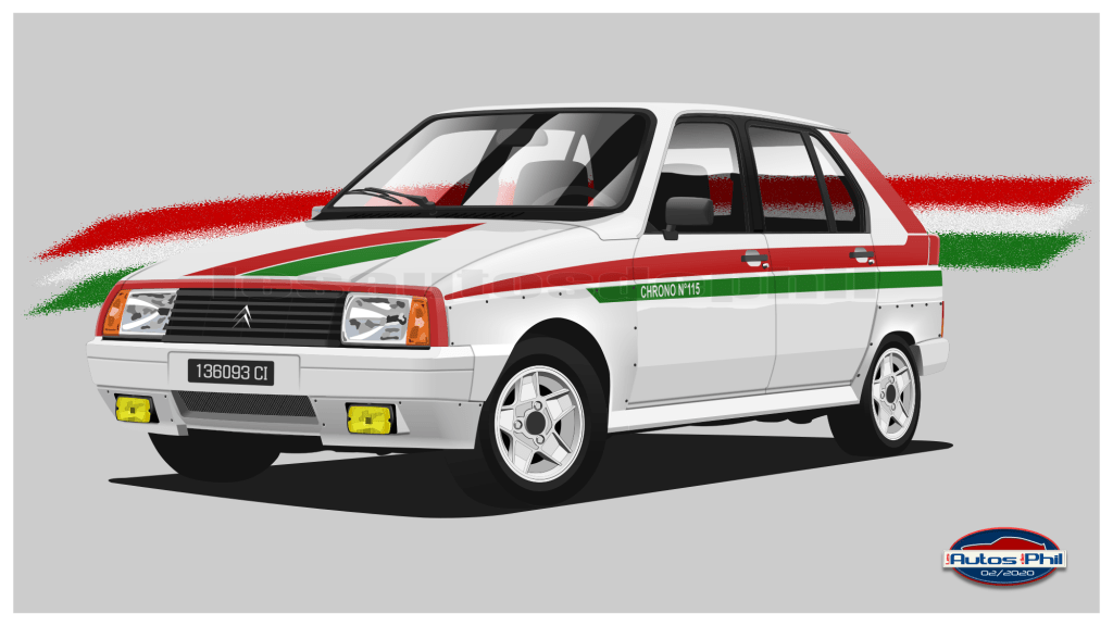 Hormis les moules pour les pare-chocs, les investissements seront ainsi réduits au minimum et cela rend la voiture esthétiquement plus agréable. D’ailleurs, les ventes vont confirmer que le choix est pertinent puisque elles vont enfin décoller, y compris avec les moteurs issus de chez Peugeot. En sus de ces modifications, Citroën n’aura de cesse d’animer la carrière commerciale à travers de nouvelles versions, des publicités décoiffantes mais surtout en développant des versions sportives. La première étant la Chrono qui va reprendre le moteur de 93 ch de la 104 ZS2, cette série limitée numérotée sera ainsi équipée d’un kit carrosserie et surtout de flamboyantes bandes latérales qui seront adaptées aux couleurs des drapeaux des pays dans lesquels elle sera proposée.
