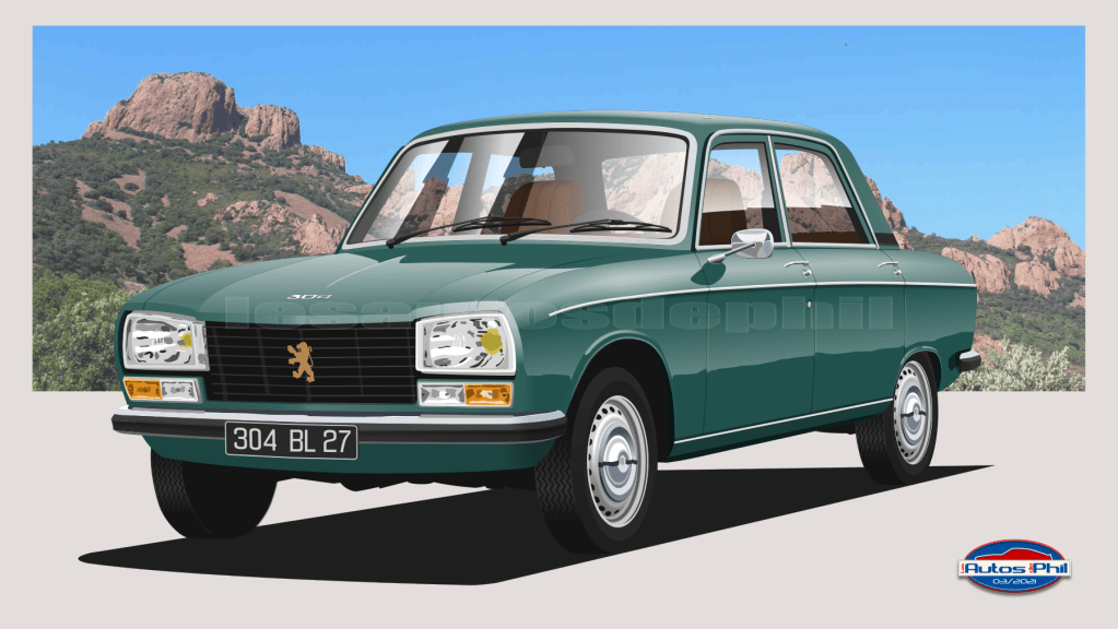 La 304 berline est donc présentée en septembre 1969 avec une évolution du moteur de la 204 passant de 1130 cm3 à 1288 cm3 et de 55 ch à 65 ch. Les trains roulants sont conservés tels quels si ce n’est un raidissement des suspensions pour mieux résister à l’accroissement du poids total. Comme vu plus haut, c’est surtout par son aspect qu’elle va se différencier de sa petite sœur et faire la jonction entre la 204 et la 504 tout en poussant petit à petit la 404 vers la sortie. Bien que plus grande, cette dernière commence à se démoder et la 304 proposant en outre des prestations proches, lui fera de l’ombre. Un an plus tard, c’est au tour du break 304 d’intégrer la gamme dont le dessin sera quasi identique à la 204 du même nom puisque toute la partie arrière est conservée ! Elle va bien sûr calquer sa mécanique et sa présentation sur la berline. On peut donc résumer les choses ainsi : si vous voulez un break bon à tout faire, prenez la 204, mais si vous voulez un break avec plus de standing, c’est la 304 qu’il vous faudra. N’oublions pas à ce stade, l’introduction des coupés et cabriolets au salon de Genève 1970 qui vont purement et simplement remplacer les 204 équivalentes, au contraire des gammes 204/304 berlines/break vivant en parallèle.