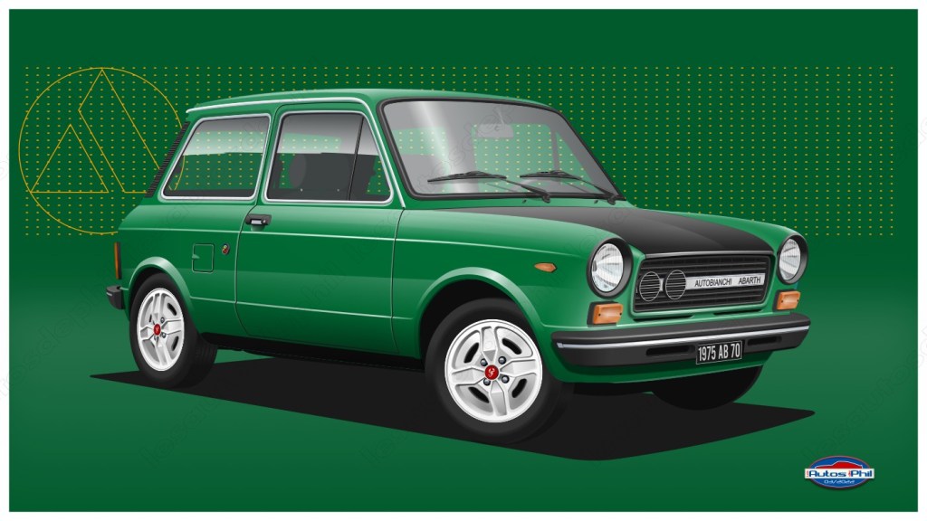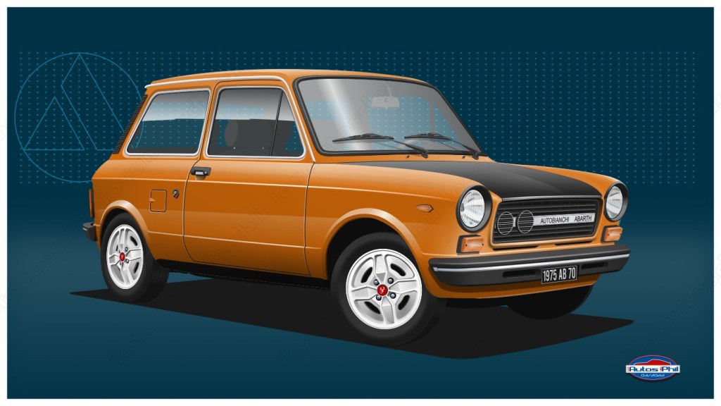 Une nouvelle fois, cette version mettra un an pour investir notre marché qui ne comprenait aucune concurrente équivalente. Il faudra attendre la 104 ZS de 1975 avec ses 66 ch. présentée néanmoins sous un aspect moins sportif que l’Abarth qui, avec son capot noir et ses jantes sport, est plus démonstrative. La française prend un avantage de 8 ch. mais pas pour bien longtemps car l’italienne va être réévaluée à 70 ch., 1049 cm3, 33,9 s au 1000 m DA et 160 km/h en vitesse de pointe. Mais le prix à payer pour ce surcroit de puissance est une motricité et un caractère sous-vireur sur le mouillé qui atteignent leurs limites, en partie expliquée par l’étroitesse de la monte pneumatique. L’Autobianchi ne cessera d’évoluer au fil de sa carrière et connaîtra en 1978, avec la quatrième série, une modification assez profonde des faces avant et arrière à l’aide de plastique noir très en vogue à l’époque.