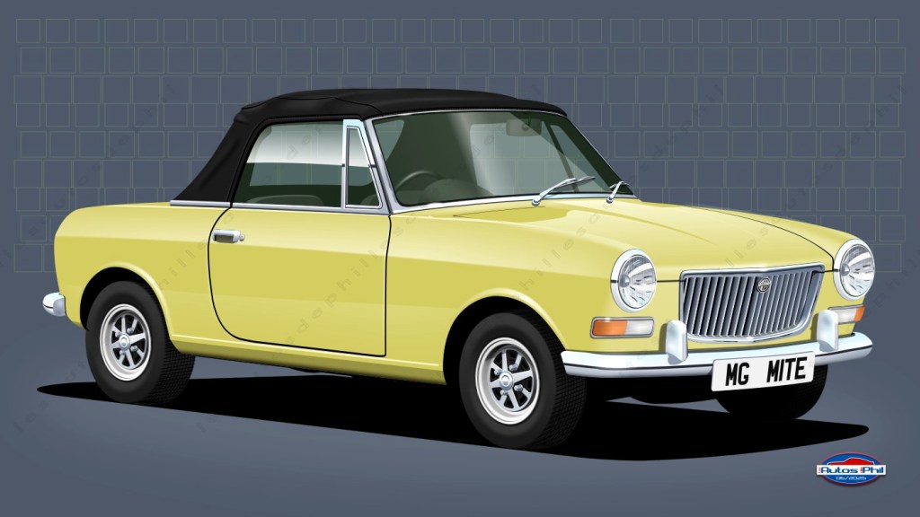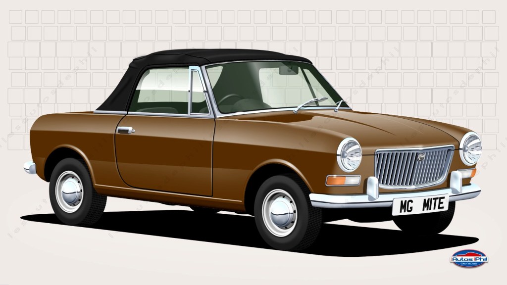 There were already such derivatives of the Mini, called the Riley Elf and Wolseley Hornet, but Nate wanted a more exclusive and better-proportioned design than those two models. His initial idea was to base it on the ADO34 convertible project built (and perhaps also designed) by Pininfarina. That project, intended to replace the MG Midget and Austin Healey Sprite, was ultimately never brought to market.
