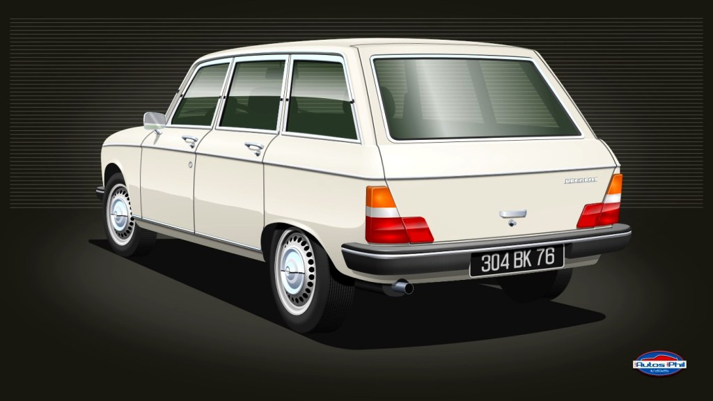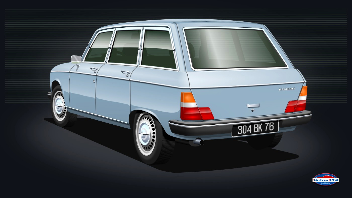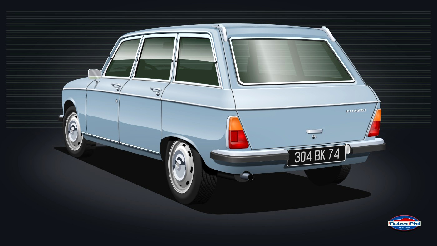 EN – In the second series of illustrations, I reused the black bumpers mentioned earlier for the estate and added lights that are better integrated into the rear panel, along with a chrome trim strip linking them. This version would correspond to a facelift for the 1976 model year, more or less around the time the 204 was withdrawn from the catalogue. This would have helped modernise the 304 while waiting for the launch of the 305.