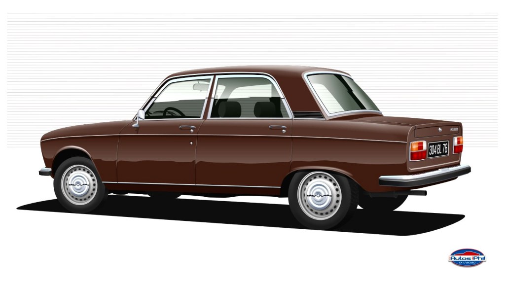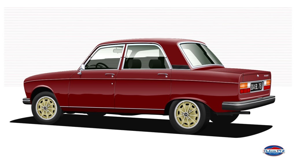 FR – Sur la deuxième série d’illustrations, je reprends les pare-chocs noirs évoqués plus haut avec le break et j’ajoute des feux mieux intégrés dans le panneau arrière, avec en plus un enjoliveur chromé les reliant. Cette version correspondrait à un restylage pour le millésime 1976, plus ou moins au moment où la 204 a été retirée du catalogue. Cela aurait permis de moderniser la 304 en attendant la commercialisation de la 305.